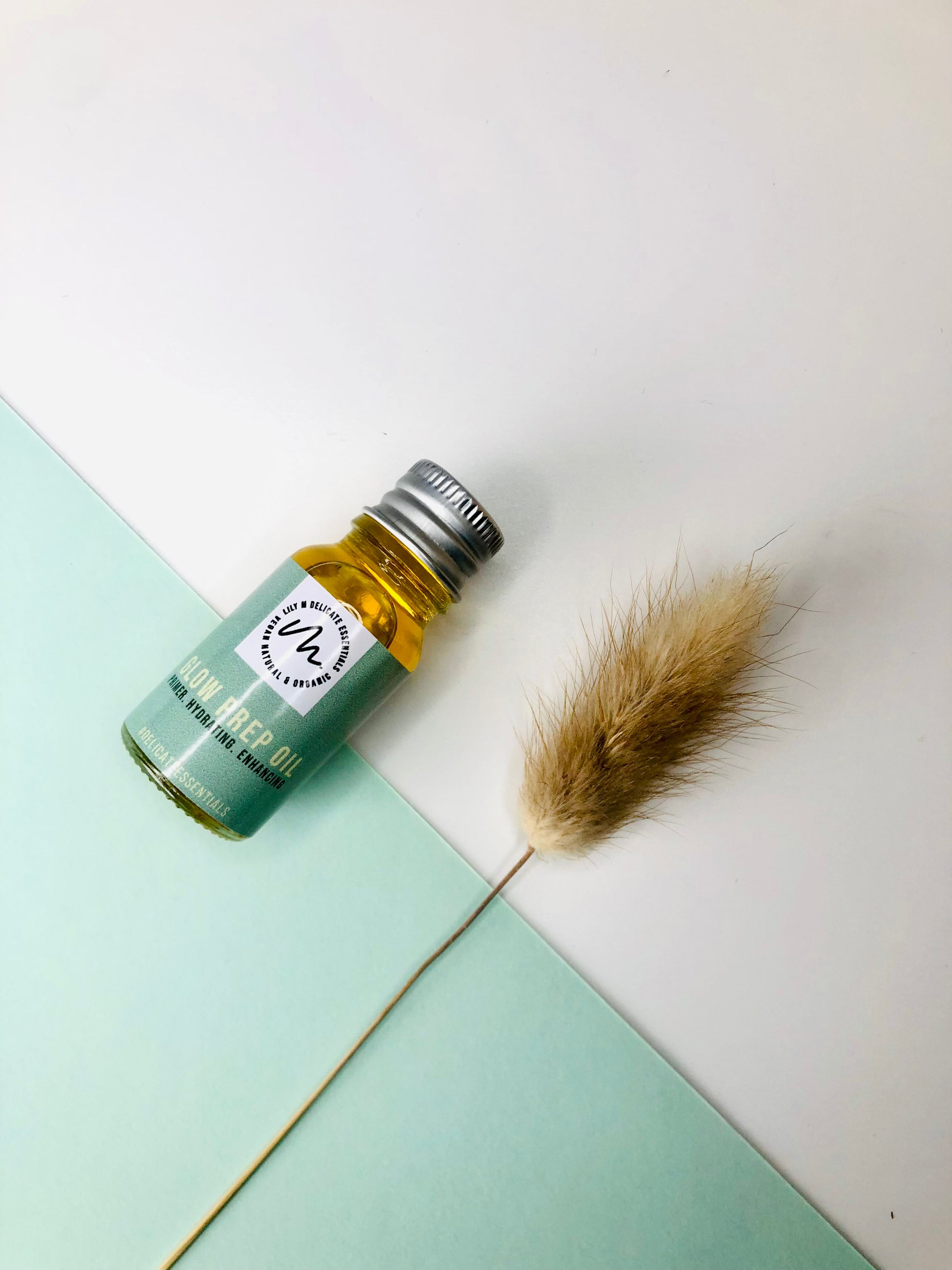 Glow Prep Oil - Ingredients: Actinidia chinensis seed oil, Oenothera biennis oil* Simmondsia chinensis Seed Oil* Tocopherol, Helianthus Annuus Seed Oil, Rosmarinus officinalis* Litsea cubeba Fruit Oil* Citralº Limoneneº Linaloolº Geranialº Citronellolº. *Organic Ingredients º Natural allergens in Essential Oils