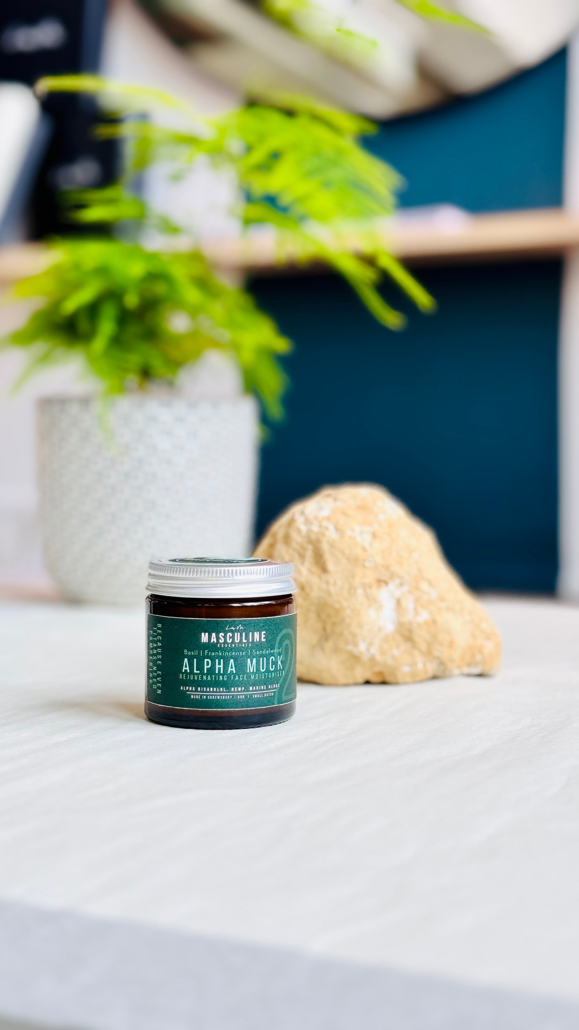 Introducing Alpha Muck: our potent men's moisturiser infused with Frankincense and Sandalwood 🪵 to combat fine lines and wrinkles.