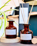 145ml Glass amber bottle with wooden reeds. Refills available.